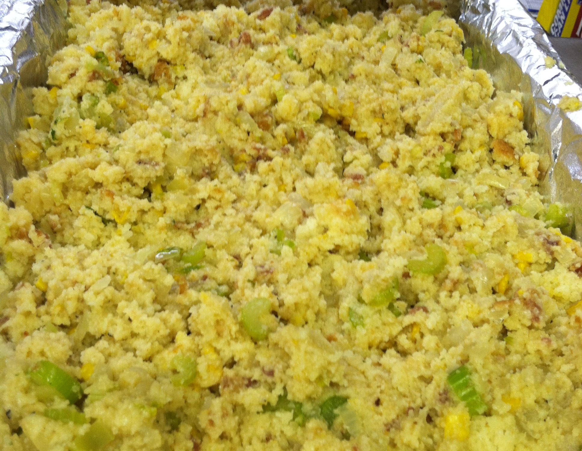 Unfortunately I forgot to take a picture of it after I baked it and don’t have a photo of the finished product. It was delicious and far better than traditional Yankee White Bread Stuffing.