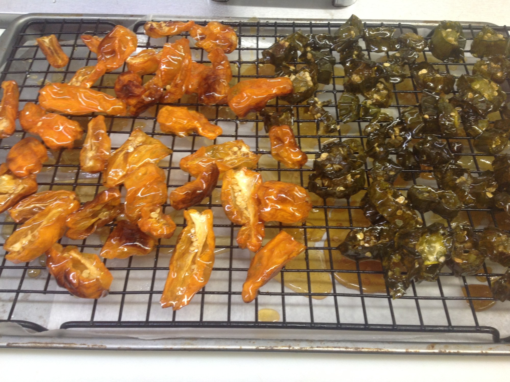 I think this might be a work in progress. I’ve never made candy and there’s no real recipe for candied Habaneros. It was tasty but didn’t get the texture right. Next time, I’ll try making hard candy instead.