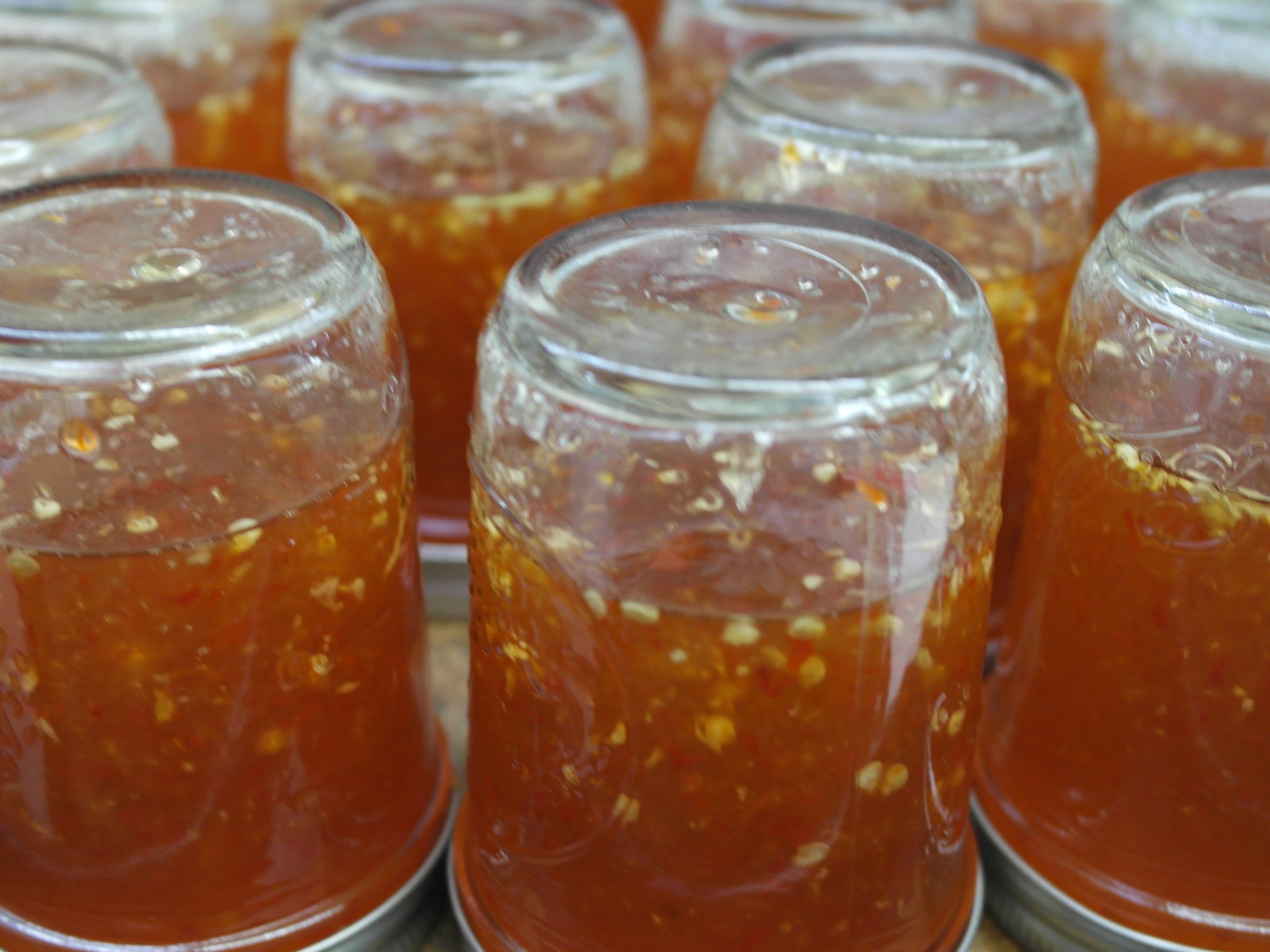 Fill jars and turn upside down for 20 minutes. Turn right side up and store.