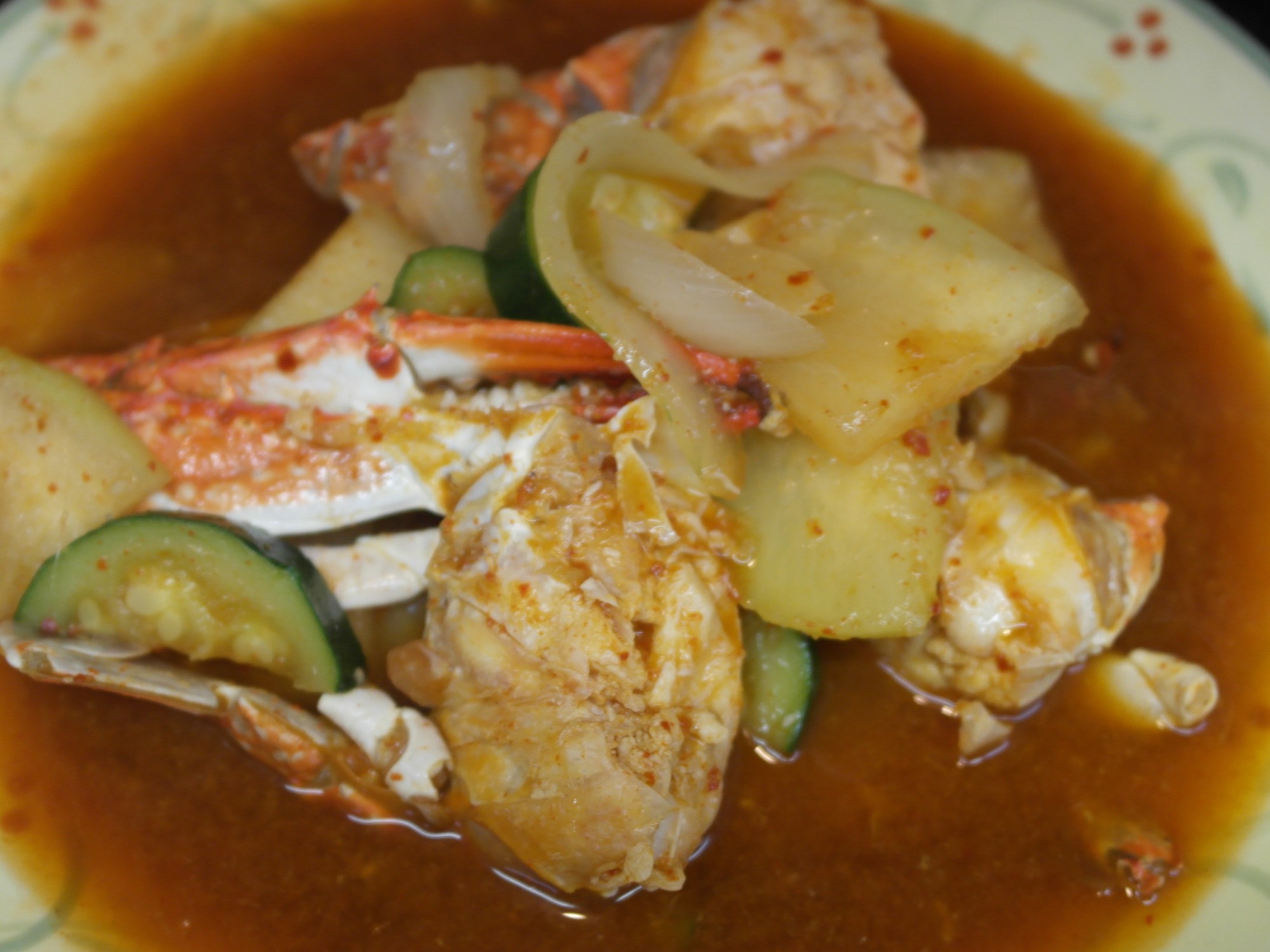 Add chili paste to boiling water.Add daikon.Bring to boil and cook.When daikon is about half cooked, add crab.Slice vegetables, garlic and ginger.When crab is about fully cooked. Add vegetablesAdd soy sauce.Add chili flakes, garlic, ginger and beef dashida.We ran out of room in our saucepan to add tofu but usually add it about 3 minutes before service.