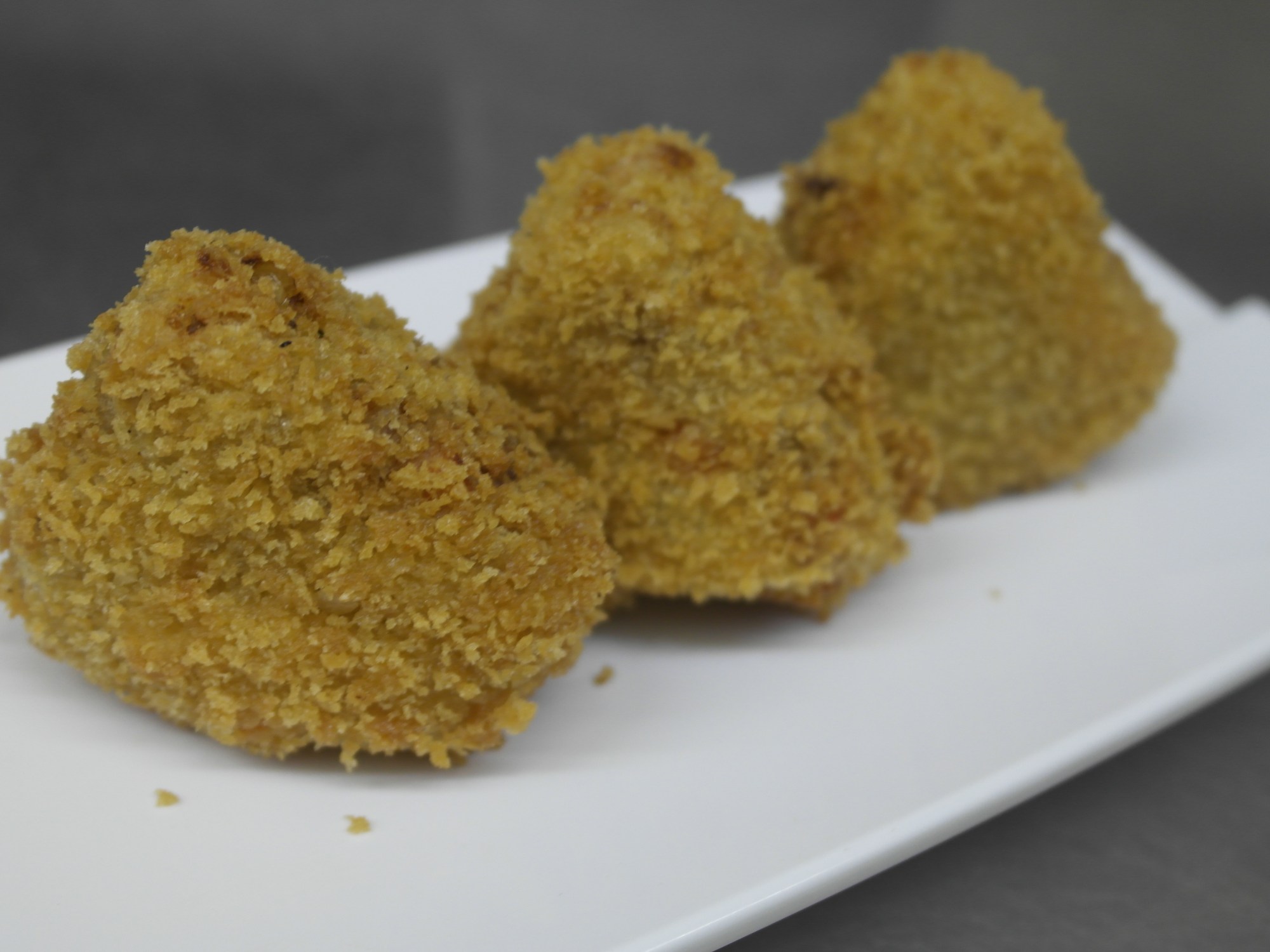 Japanese make so many delicious little fried treats and these are one of my favorites. I wanted to put curry but I had too many objections so I threw in a bit of creole seasoning to give it a little flavor. I shaped them into triangles like onigiri since I was also craving those. Time consuming but worth the effort.