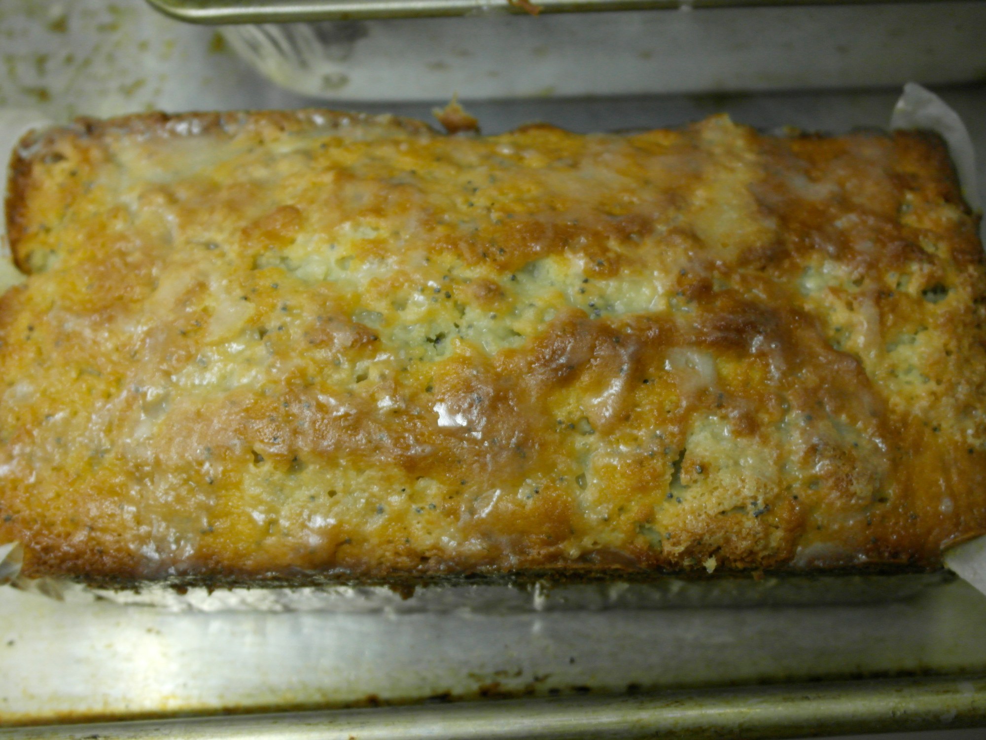 3. Grease pans and bake 55-60 minutes. Cool and mix ingredient for glaze. Drizzle.