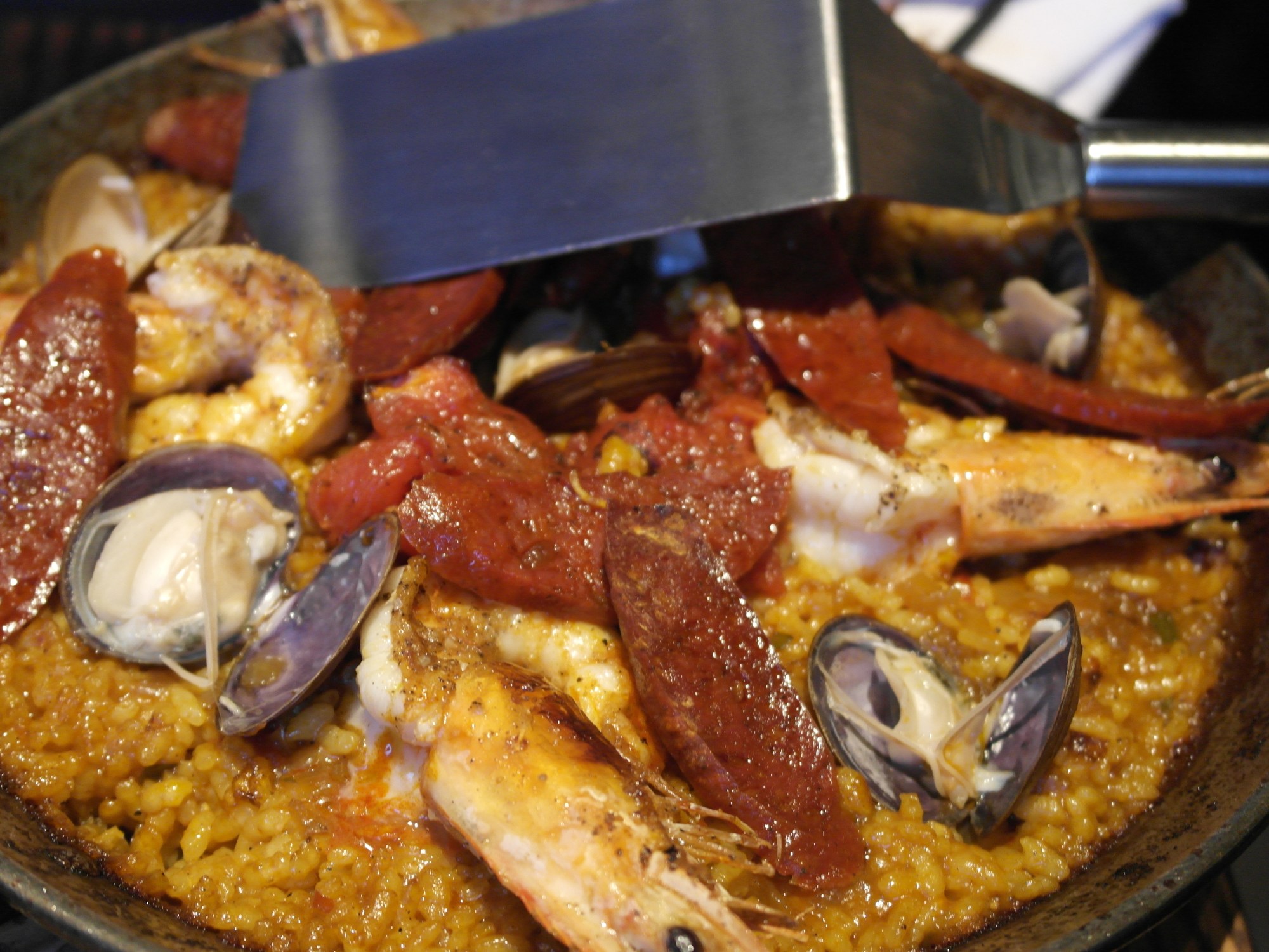 Wood Grilled Octopus – with fingerling potatoes, pimenton and olive oil.Grilled Peaches with Pork Belly and toasted hazelnuts.Pintxos – Baby Beets – Cana de Cabra Cheese, Citrus and Spring Onion a la Plancha & Quail Egg Diablo, Pickled Mustard SeedSunny Side Up Eggs – with Shrimp, crispy potato and Chorizo dressing.Paella – The classic, made with Bomba rice, Jamon Serrano – Shellfish broth, roasted tomato, Chorizo, Gulf Prawns, Clams and Lemon Aioli. (Homemade Chorizo is AMAZING!)Pluma – Iberico de Bellota Pork Shoulder Loin with Honey Chili Glaze.The Sun Never Sets – Licor 43, Tequila 123 Anejo, Lime, Fresh Pressed Pineapple Juice, Mezcal – Pineapple Espuma Brulee.Churro with chocolate soup and dehydrated red fruit.