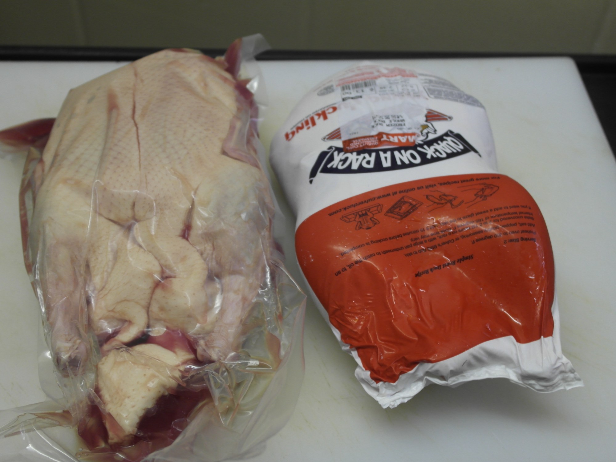 It’s Friday night, everyone one and my mother are out having adult beverages celebrating life while I’m on a double date with two ducks.  One being a beautiful fowl from a free range foo foo farm eating only the best while the other is from the other side of the tracks of mass production.  We will see which will taste better but the price difference was about three times.