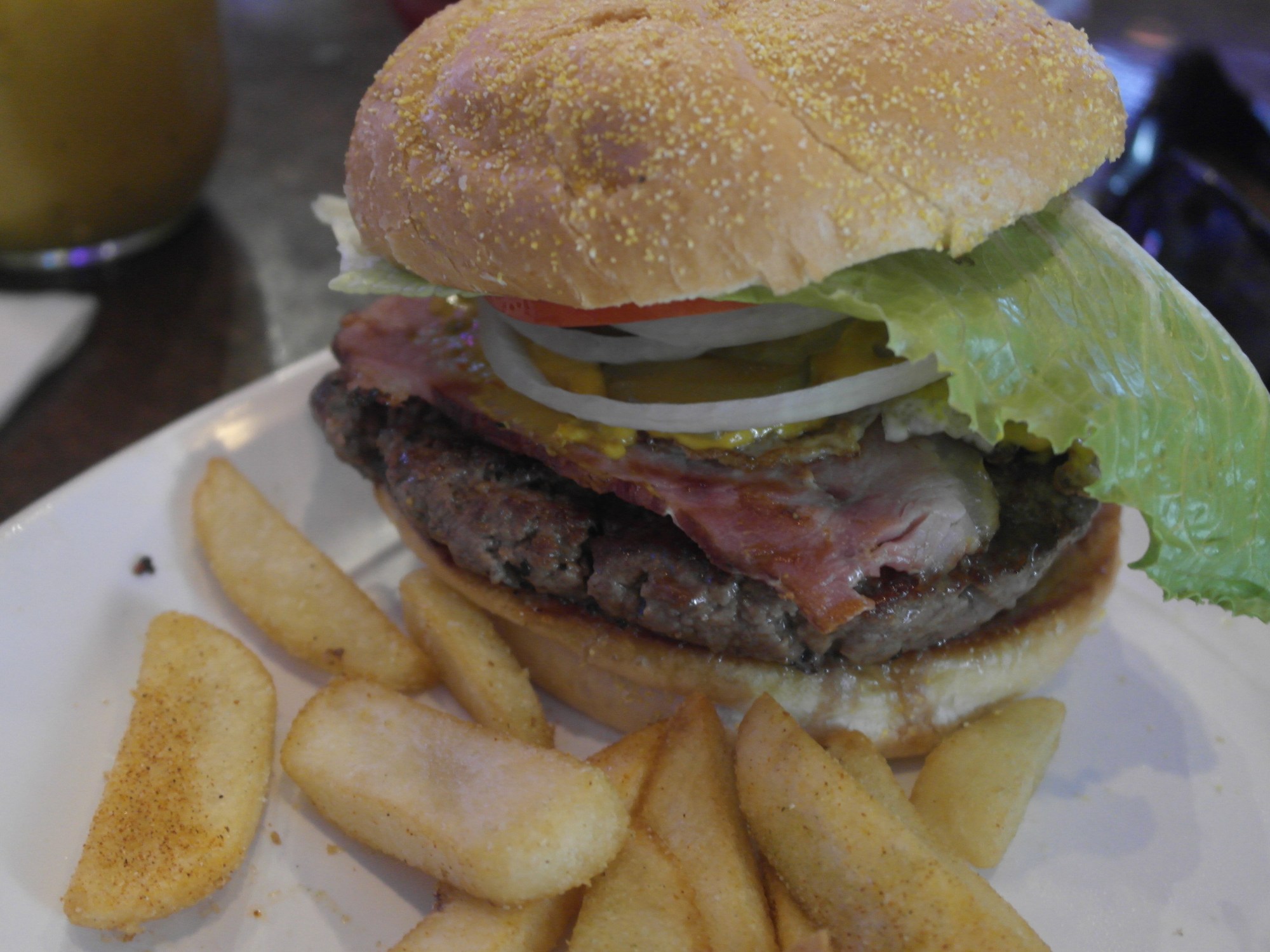 Here’s to entry #100 the Cowboy Burger. Hamburger topped with Homemade Canadian Bacon with an Over-Easy Egg. Pretty good and making me mighty sleepy. Unfortunately missed week 2 while I was in Houston for meetings.